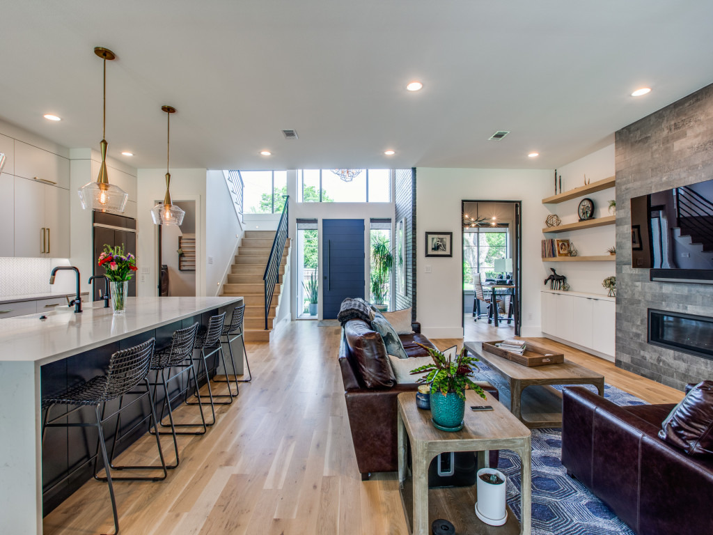 Stunning contemporary built in 2019 has impeccable detail for the most discerning buyer. This 4 bdrm 3.5 bath home sits on a large corner lot less than 1 mile from White Rock Lake in Old Lake Highlands. The spacious entry guides you into an oversized kitchen-living-dining space surrounded by floor-to-ceiling windows that overlook the large backyard with covered patio, outdoor kitchen and living area. First floor features a master suite, study, and 2nd office. Upstairs has 3 bdrm & 2 baths. Other features include: large mudroom, downstairs laundry with ample storage, oversized 2 car garage, spray foam insulation, 2 tankless water heaters, high efficiency HVAC.